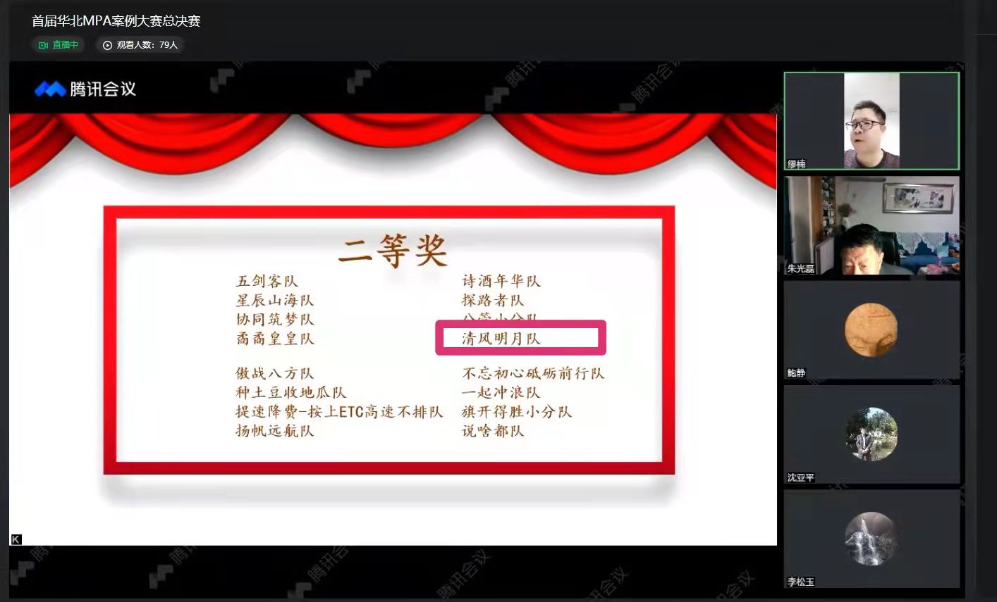 由我校王强教授、陈文茹副教授指导,2019级MPA研究生张鑫玲、董伟明、姜源组成的“清风明月队”,经过案例文本编写、现场汇报展示、临场回应质疑三个环节的激烈角逐,最终获得华北地区高校专业学位硕士研究生MPA案例大赛决赛二等奖!这是“清风明月队”继9月22日取得内蒙古自治区首届高校公共管理硕士研究生(MPA)案例大赛二等奖后,再次斩获佳绩!