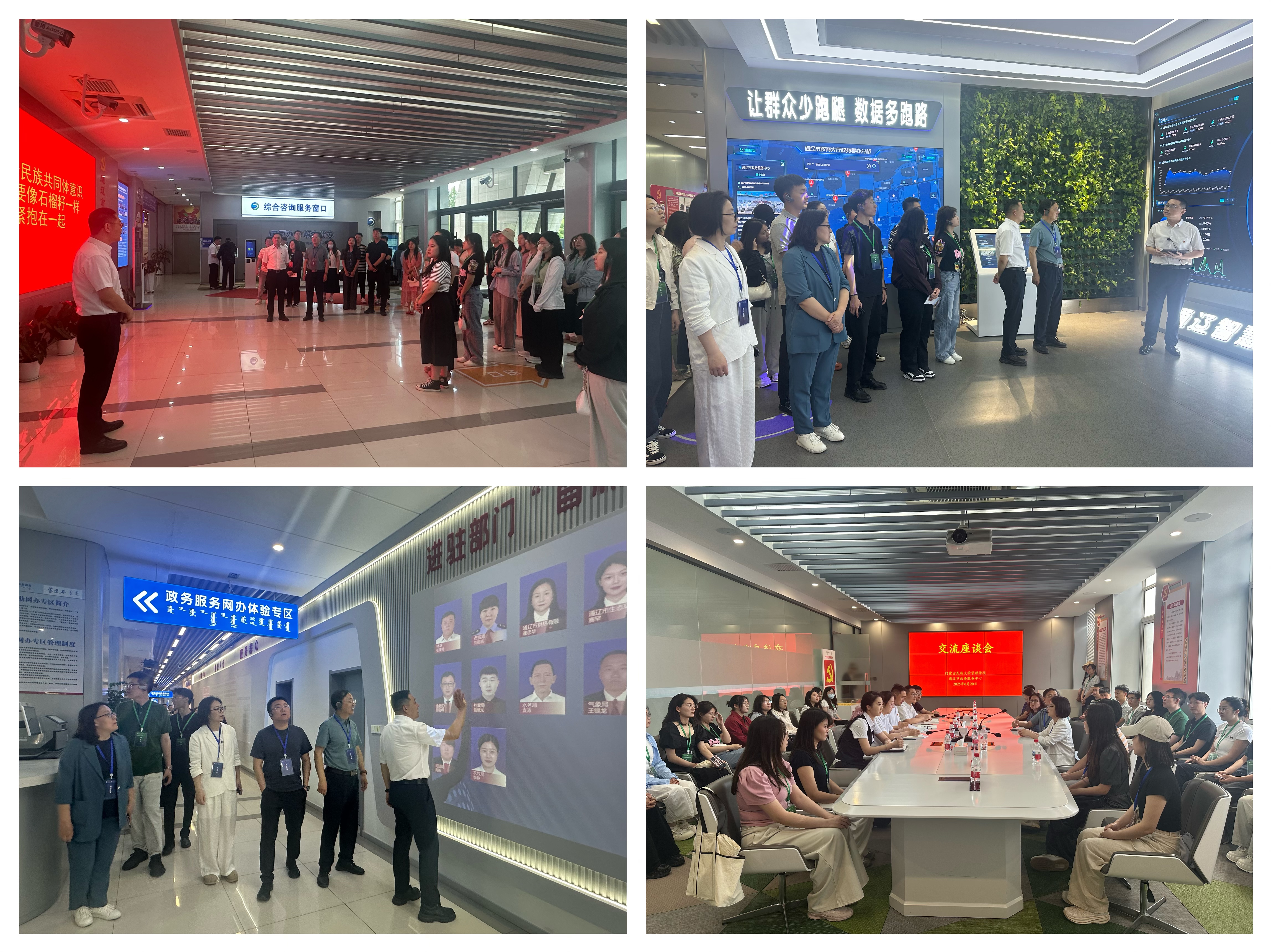 通过两个中心负责人的现场讲解,MPA师生深刻感受到基层治理创新与政务服务改革的协同效应,进一步厘清了政府职能转变的内在逻辑。此次现场教学不仅是一次生动的案例学习,也是通辽市市域治理现代化的实地调研。师生们在真实治理场景中理解政策设计的复杂性与动态性,将理论框架与基层实践相结合,为培养具有政策分析能力、治理创新能力和社会服务能力的复合型人才开展了有益的实践教学改革探索。