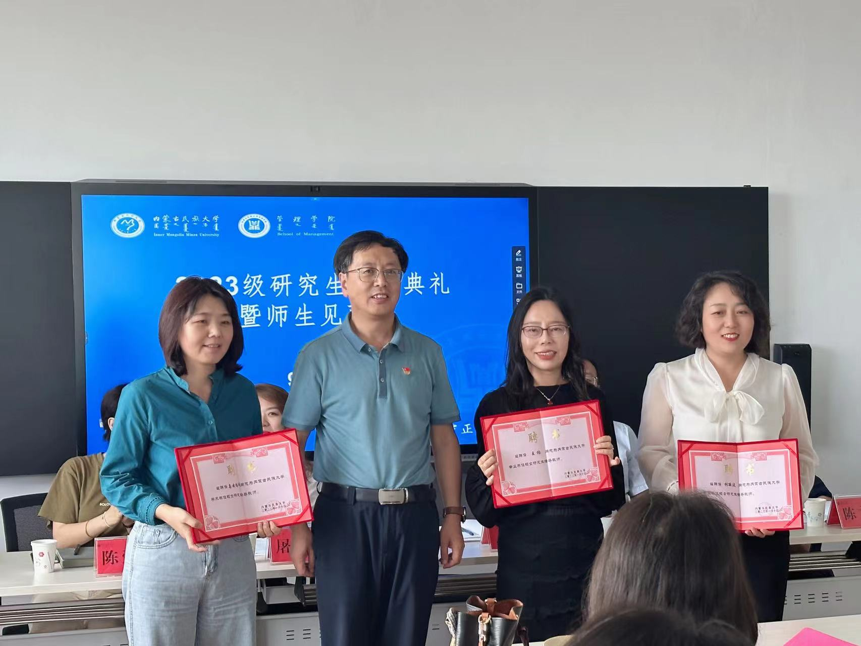 会上,首届民族地区公共管理研究生张博和2023级公共管理硕士研究生孙琦作为研究生代表分别进行了发言。王强院长为新遴选研究生导师颁发聘书,林丽波作为新聘导师代表发表感言。李俊枝主任介绍了内蒙古民族大学MPA的基本情况。