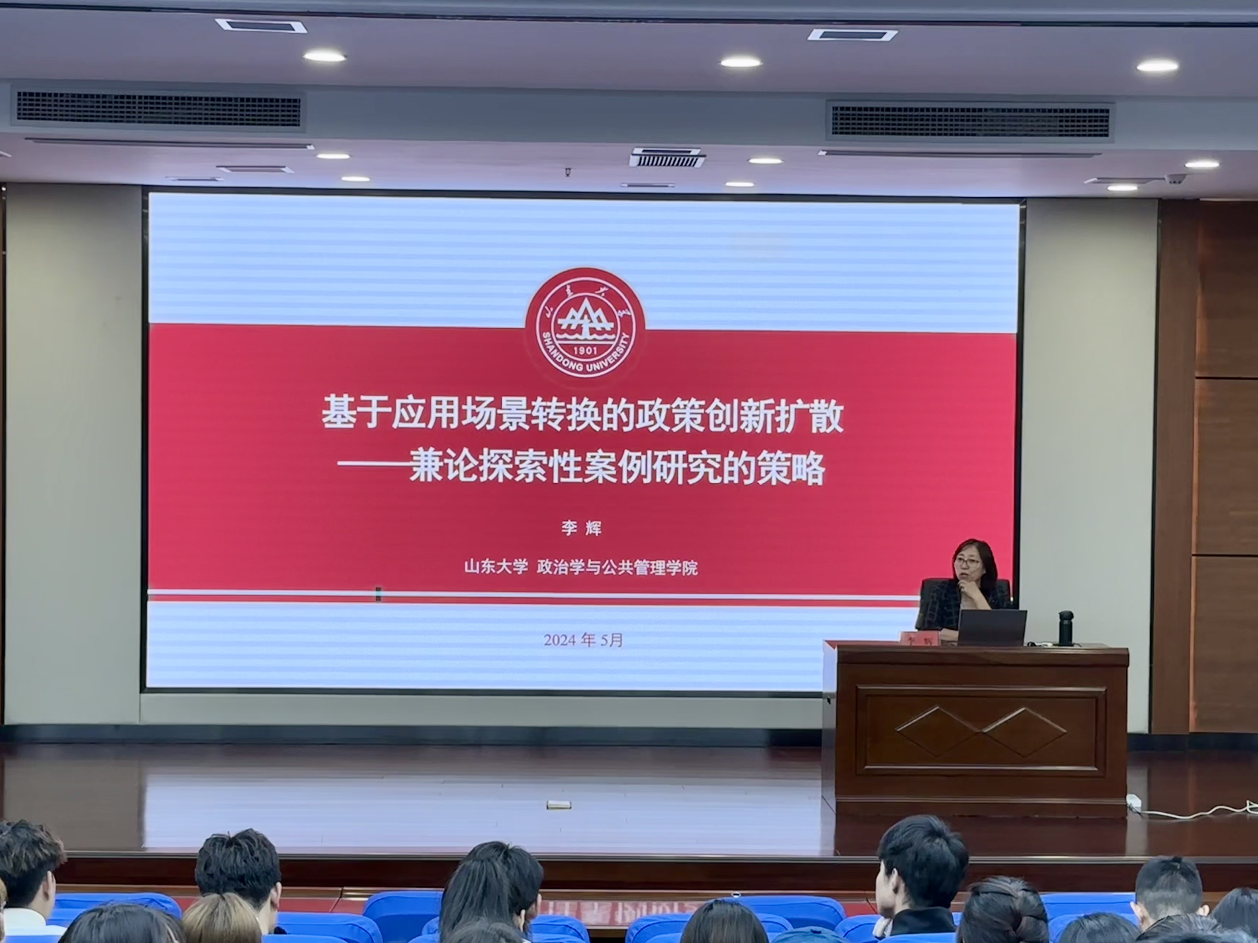 5月26日,管理学院举办“公共管理论坛系列讲座”第四十二期,邀请山东大学政治学与公共管理学院教授、博士生导师李辉教授作题为《基于应用场景转换的政策创新扩散——兼论探索性案例研究的策略》专题讲座。2022级、2023级公共管理专业研究生,2021级、2023级行政管理专业本科生共80余人参加讲座,讲座由公共管理系主任李俊枝副教授主持。